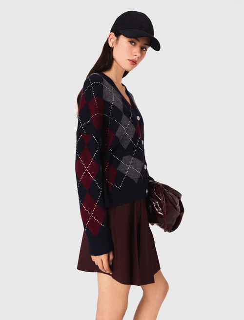 Cropped argyle pattern cardigan,